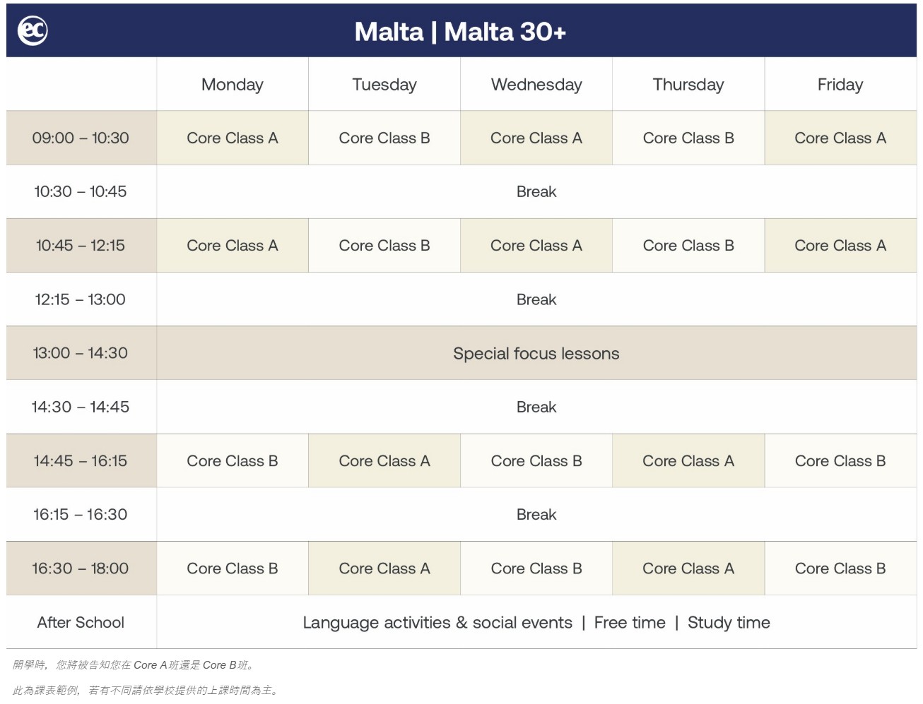 • 綜合技能Core Class A 或 B+每日選修