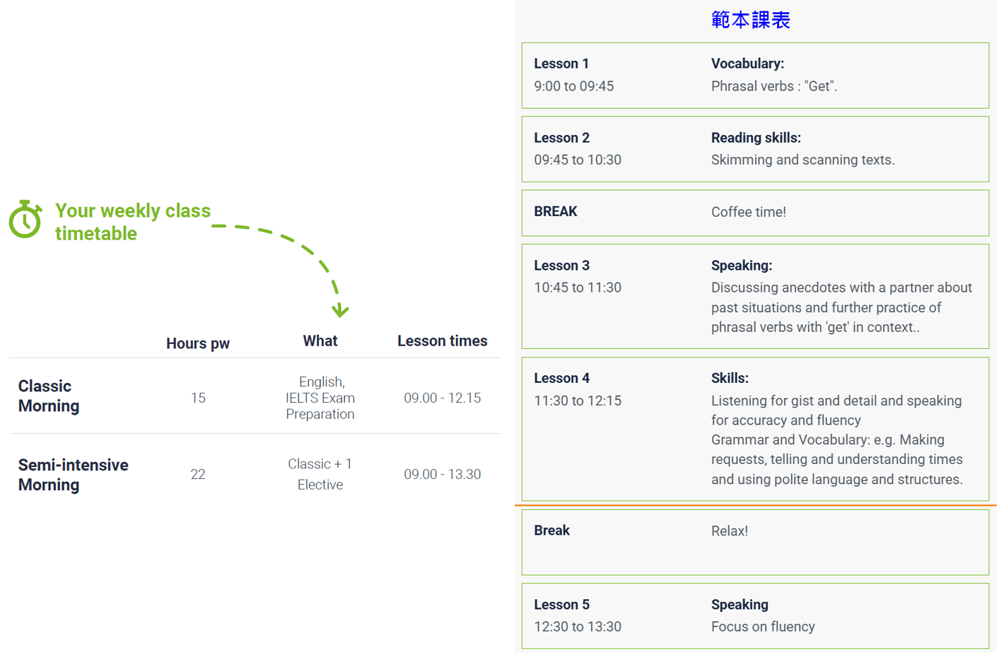 • 上午一般英語 / 雅思考試準備 (需有中級以上程度)