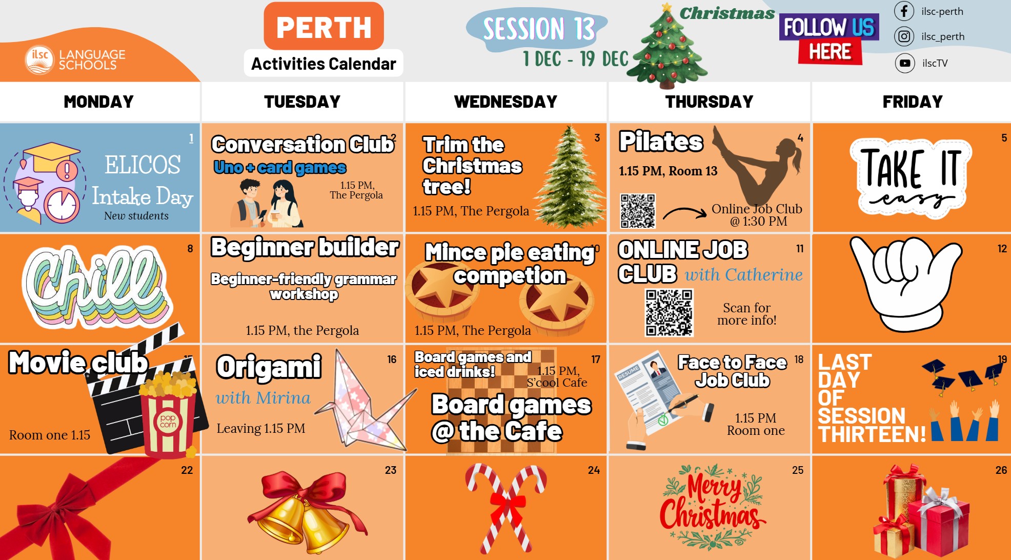 由學校的活動部門規劃當地最熱門及適合學生的活動。學生可利用課餘時間探索新城市、感受大自然、認識新朋友,並獲得寶貴的ILSC生活經驗。活動部門根據當地的天氣狀況及季節提供每日、每週或每月的戶內外活動規劃表。