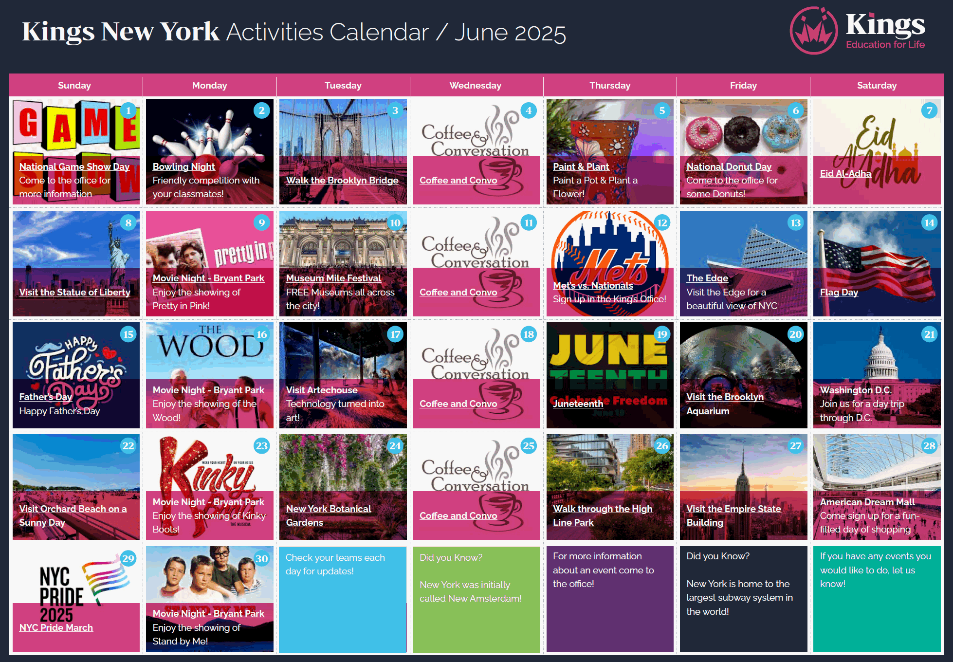 Kings國王教育成立於1957年,是一所享譽國際的教育機構,總部位於英國,在英國和美國都有分校,專注於為學生提供適合的學術及升學課程。同時,我們也為成人和青少年學習者提供英語遊學課程。