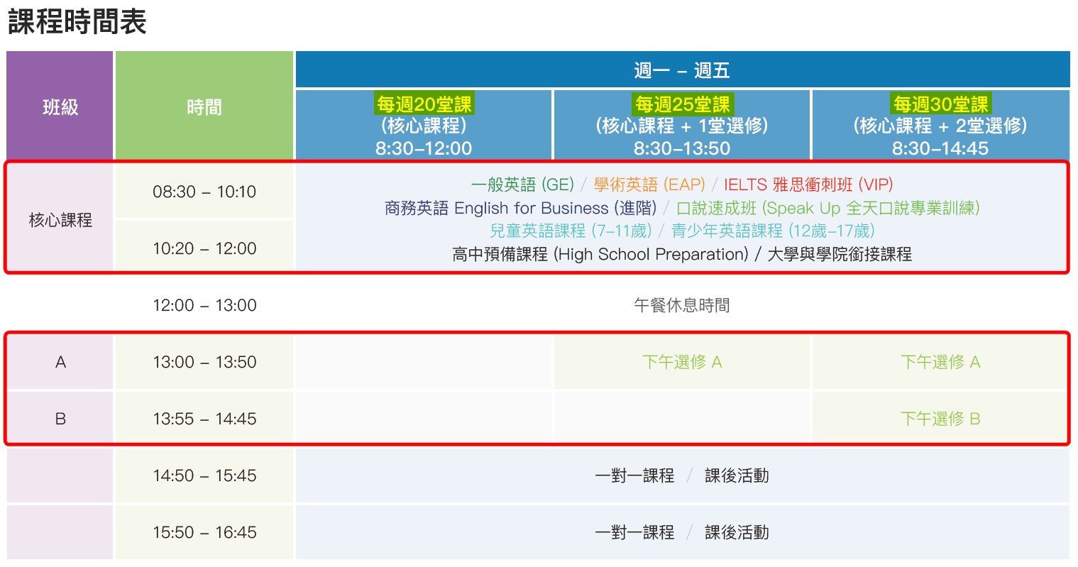 (下午的選修建議選口說相關課程)