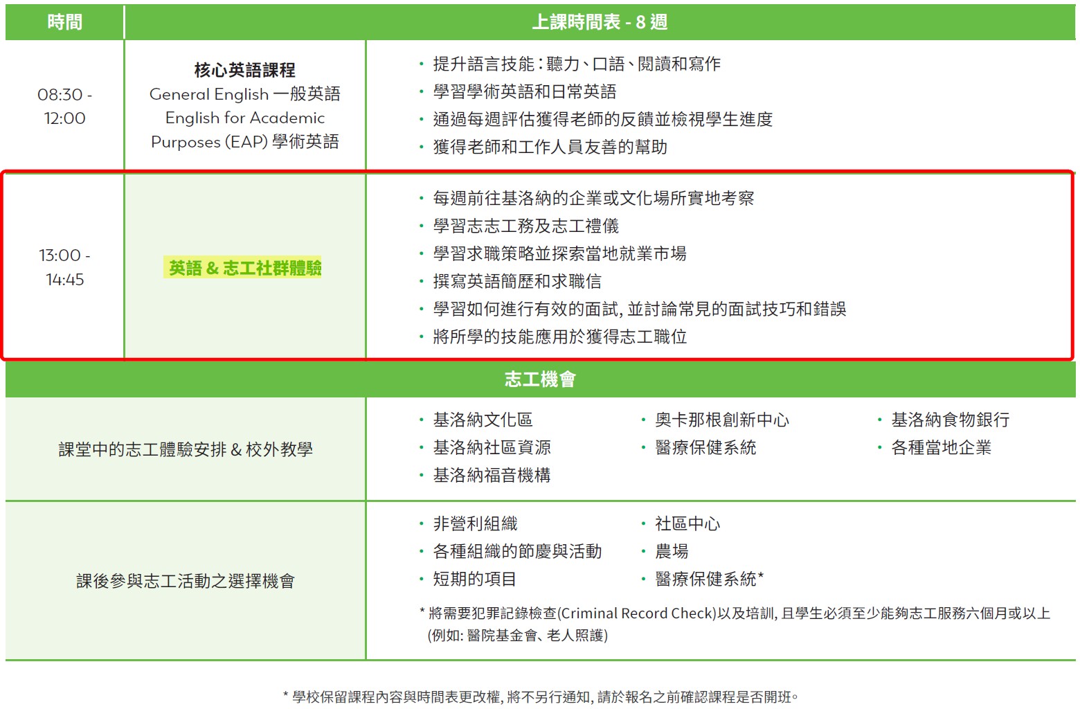 英語 & 志工體驗English & Volunteer Experience (限報名30堂/週)